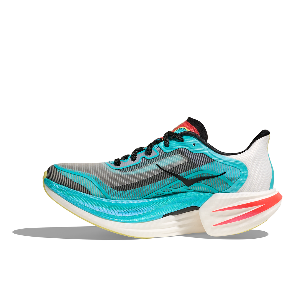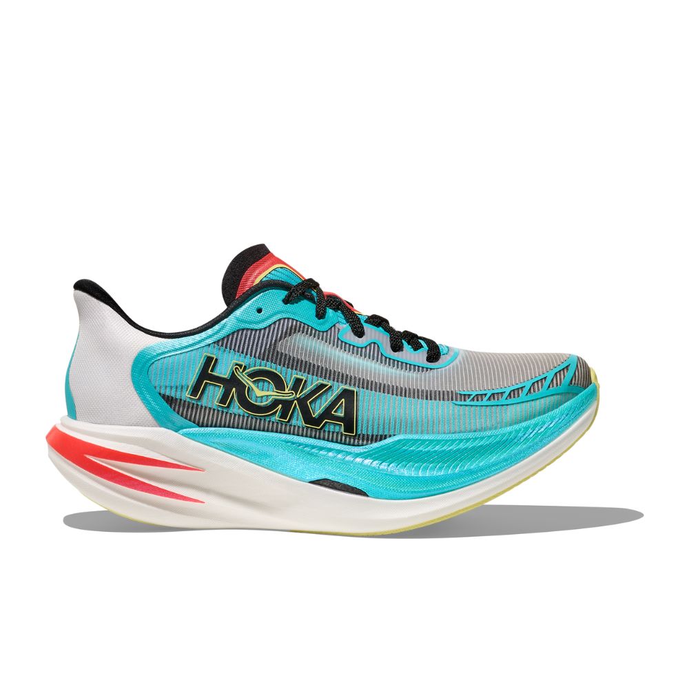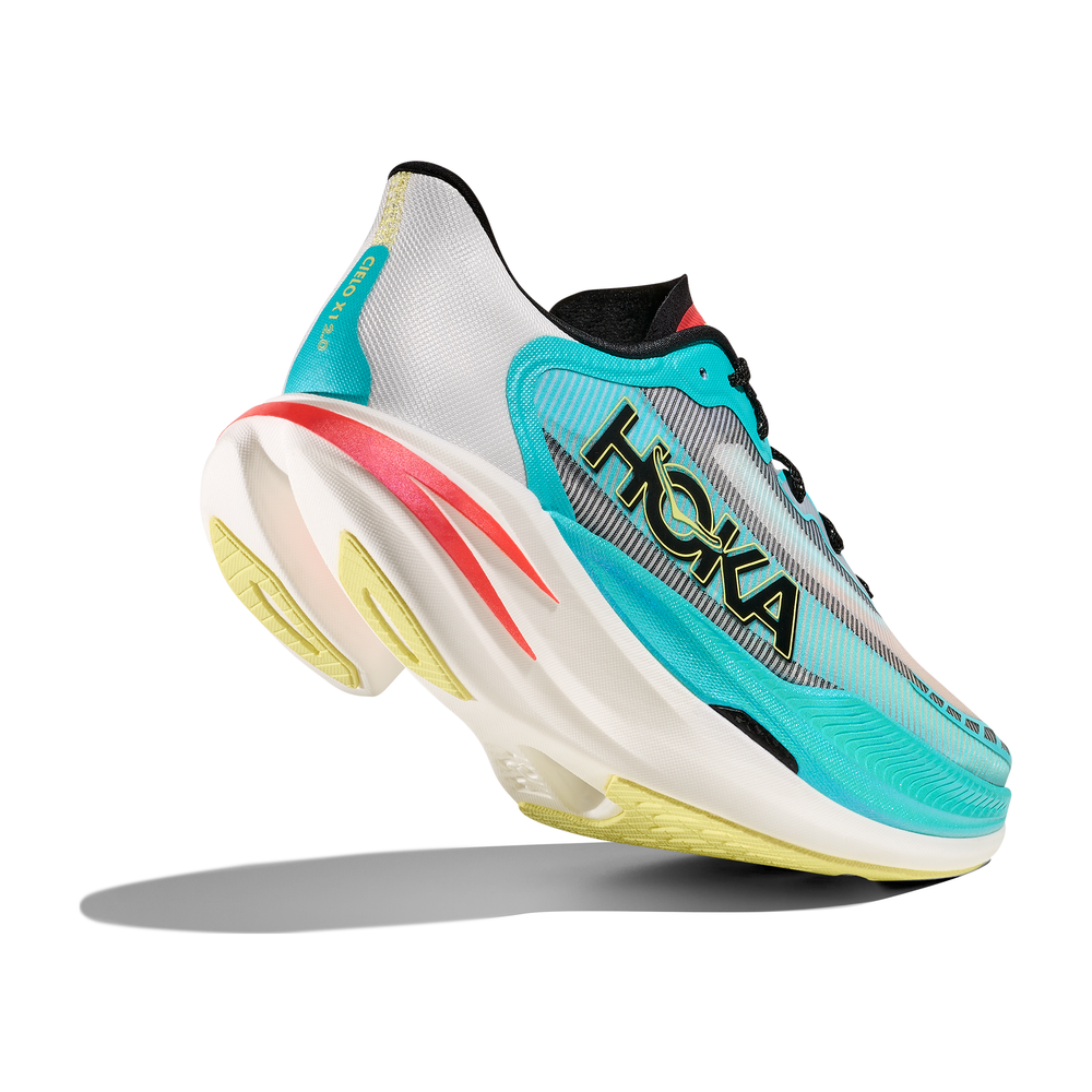 A tip-of-the-spear product tuned for higher tempo pickups, the Cielo X1 2.0 is a must for speed seekers. Engineered with an aggressive forefoot rocker and ultra-responsive dual-density PEBA midsole with snappy carbon fiber plate, this pace-pushing road racer has been finished with a light, breathable upper. Designed with dynamic cutouts for weight savings and a cushioned collar to ensure secure foot lockdown, we’ve employed a sticky rubber outsole for improved traction when chasing those PRs.